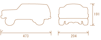 全長473cm(ほぼ5ナンバー車枠です)、全幅204cm、全高191cmです。